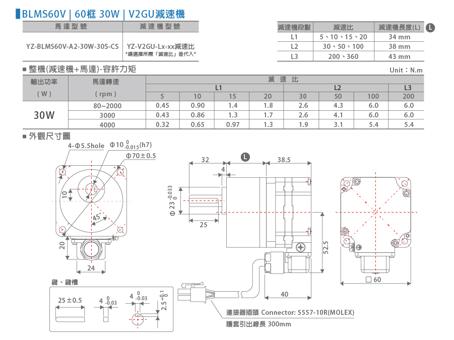 左右滑動看表格馬達型號表示 YZ BLMS60V A2 30W 30S CS YZ公司 BLMS系列 無刷馬達