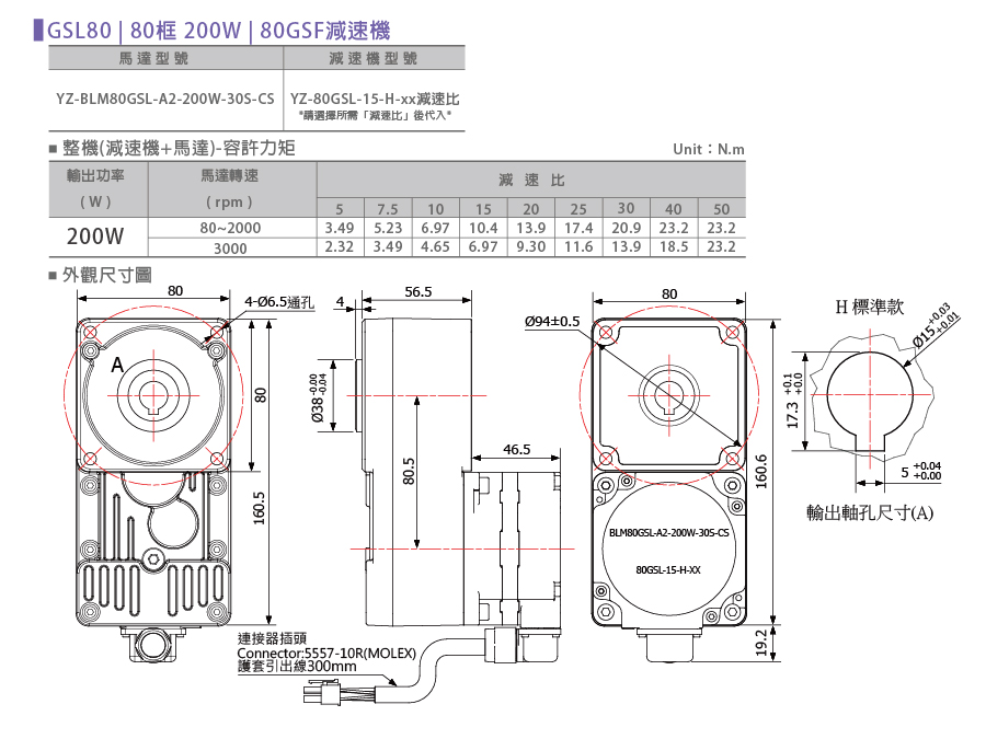 BLM80GSL / 80GSL-15-H-xx 尺寸圖 Dimension 型號:YZ-BLM80GSL-A2-200W-30S-CS