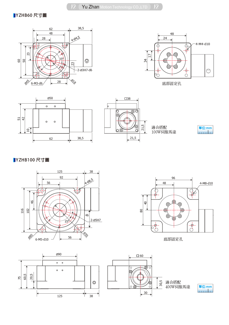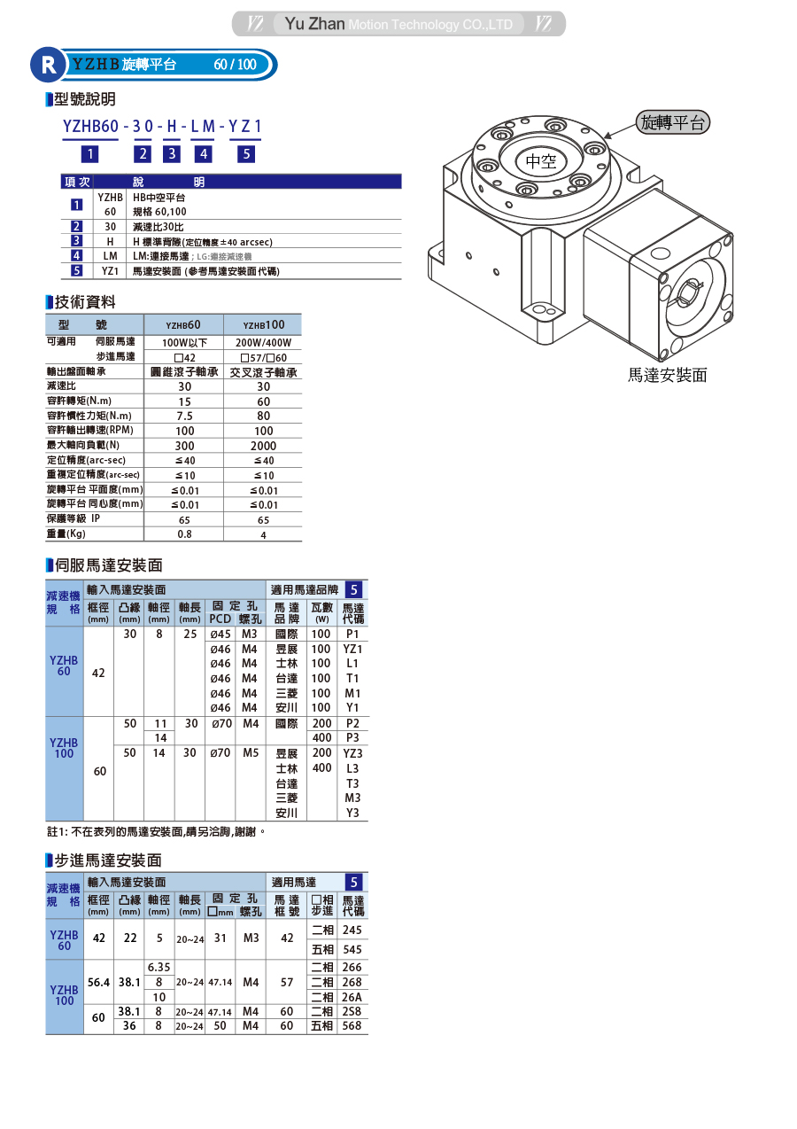 明YZ- HB60- 5 - H - LM - P3 - 公司名 系列名 減速比 背隙 馬達連接 馬達品牌/瓦數 規格選擇 HB60