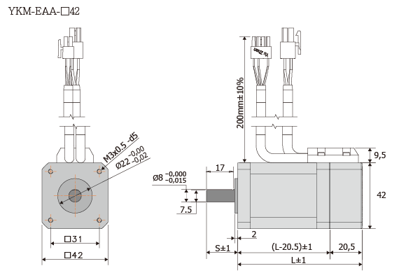 全閉迴路步進馬達 尺寸圖 Dimension 型號:YKM-EAA-□42mm