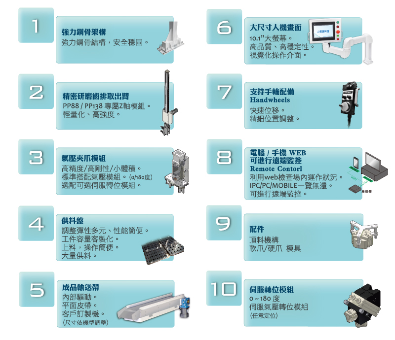 Steel frame強力鋼骨結構,安全穩固。 精密研磨齒排取出臂
